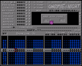 Digital Mugician 2 - This format is a 7 voices version of the first Digital Mugician editor. It was never released to the public. It works by combining 2 sub-songs into one song. The first 3 voices of the first sub-song are played normally, but all the 4 voices of the second sub-song are mixed together. It tooks so much CPU power to do, so even the display may max be in 16 colors to save DMA cycles.